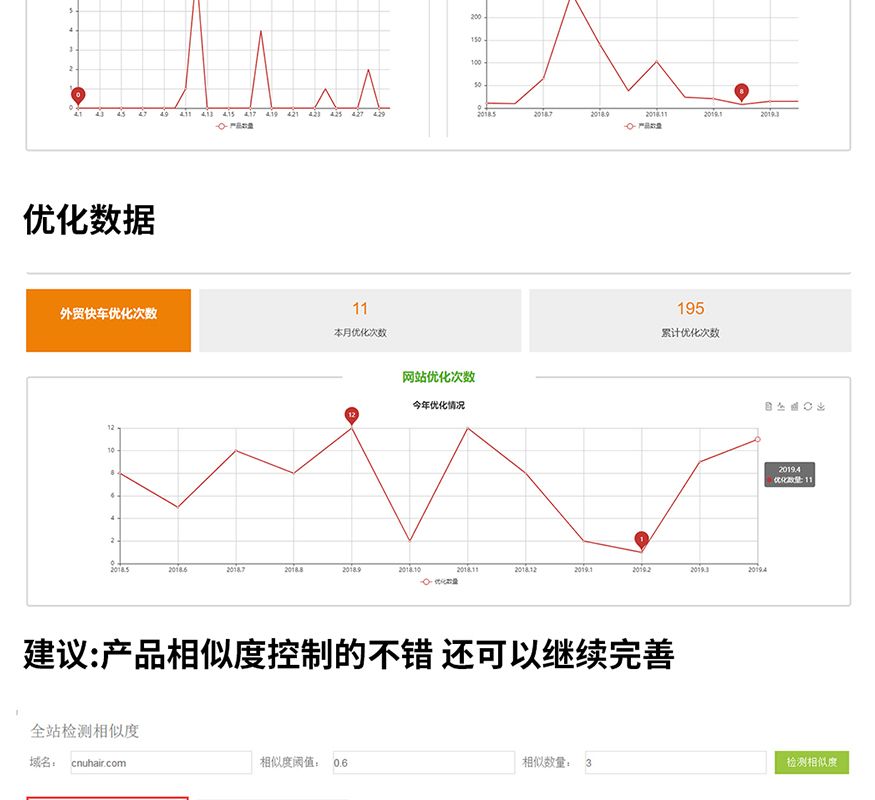 客戶公司于2014年創立于中國青島,是行業內發制品供應商,致力于高端假發、睫毛的出口貿易。谷歌seo推廣效果怎么樣?我們的Google優化推廣假發睫毛行業案例客戶于2017年選擇外貿快車產品,初次簽訂了1年合作協議,2018年到期以后選擇了一次性續費3年。目前外貿快車網站上共發布了1341個產品,并且客戶很注重產品文案的質量,不相似產品的比例高達80%以上。產品新聞和行業知識也持續在更新中,目前網站上已發布111條新聞和113條行業知識。這些頁面共計為客戶帶來2258條詢盤,日均流量更是高達264個。