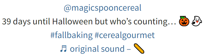 例如,Cheerios 可能想知道 Magic Spoon 正在以#cerealgourmet 和#fallbaking 標(biāo)簽獲得某種原因。